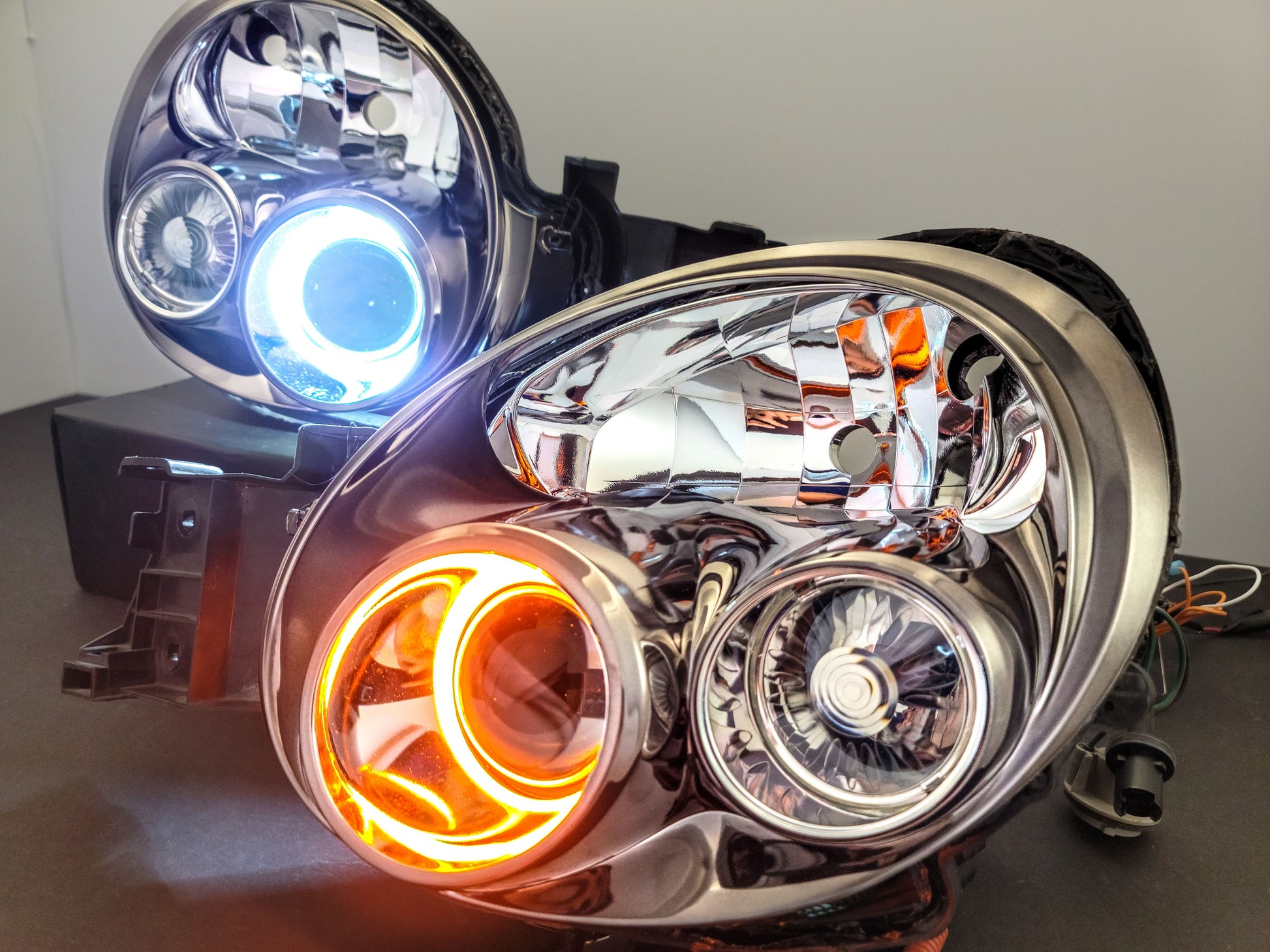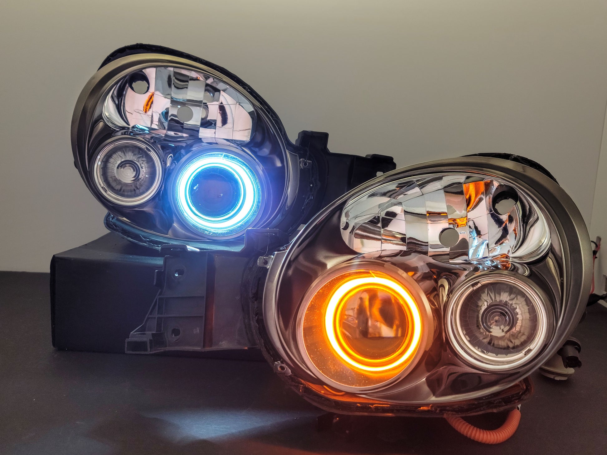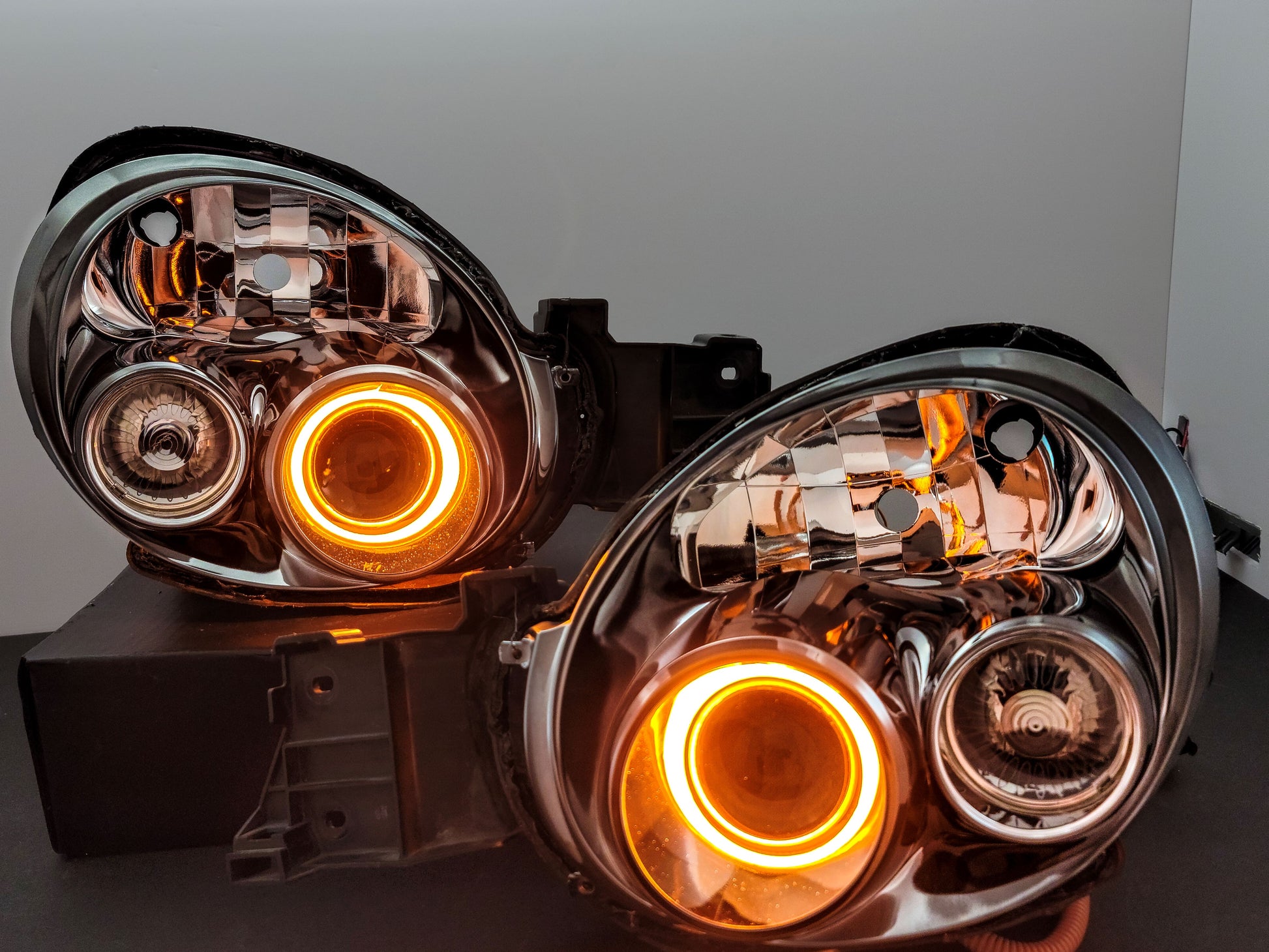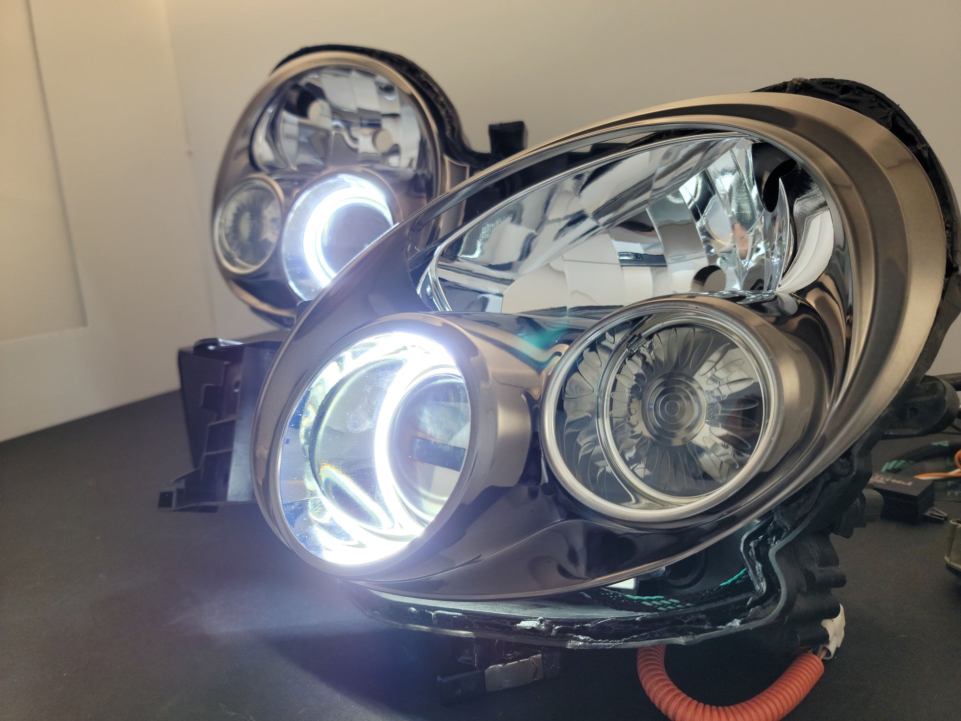Custom retrofitted JDM headlights for Subaru Impreza/WRX models.