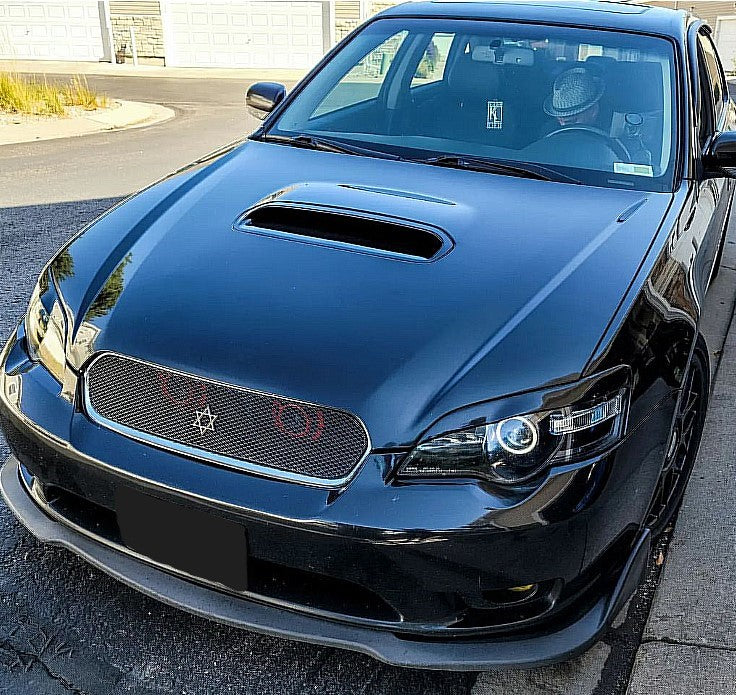 Custom retrofitted headlights for Subaru Legacy/Outback models.
