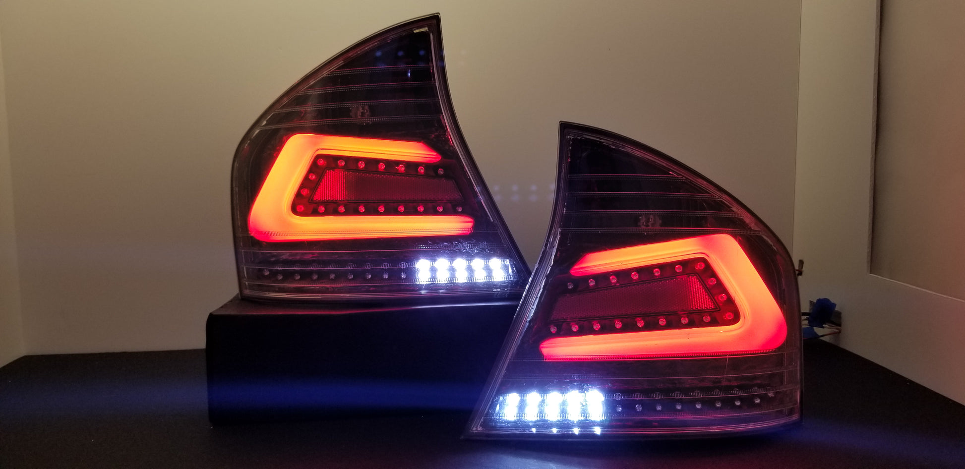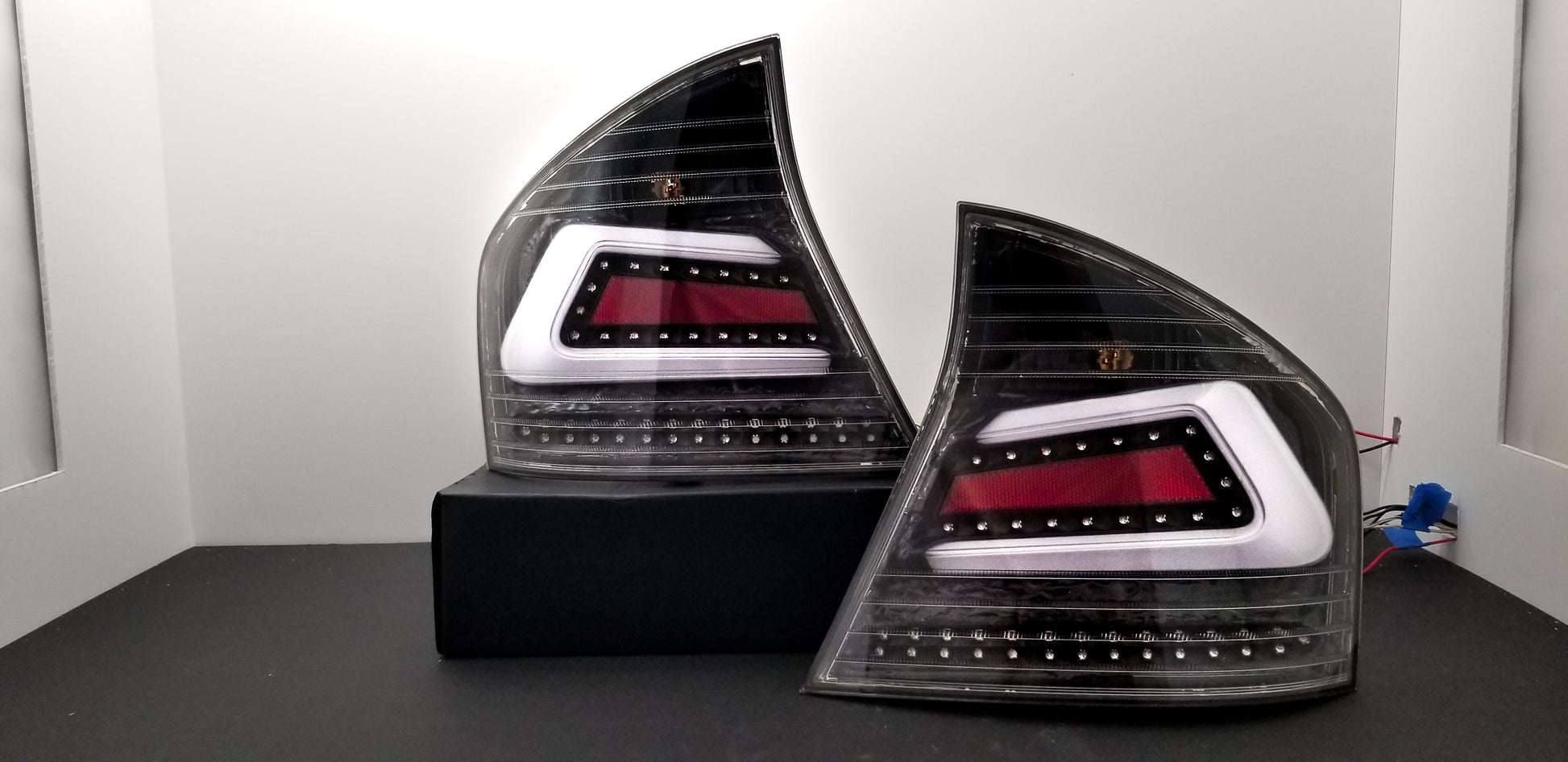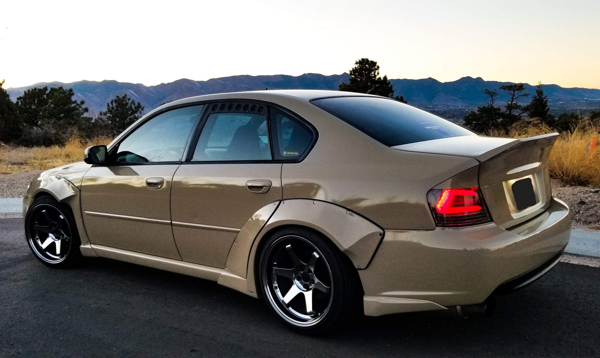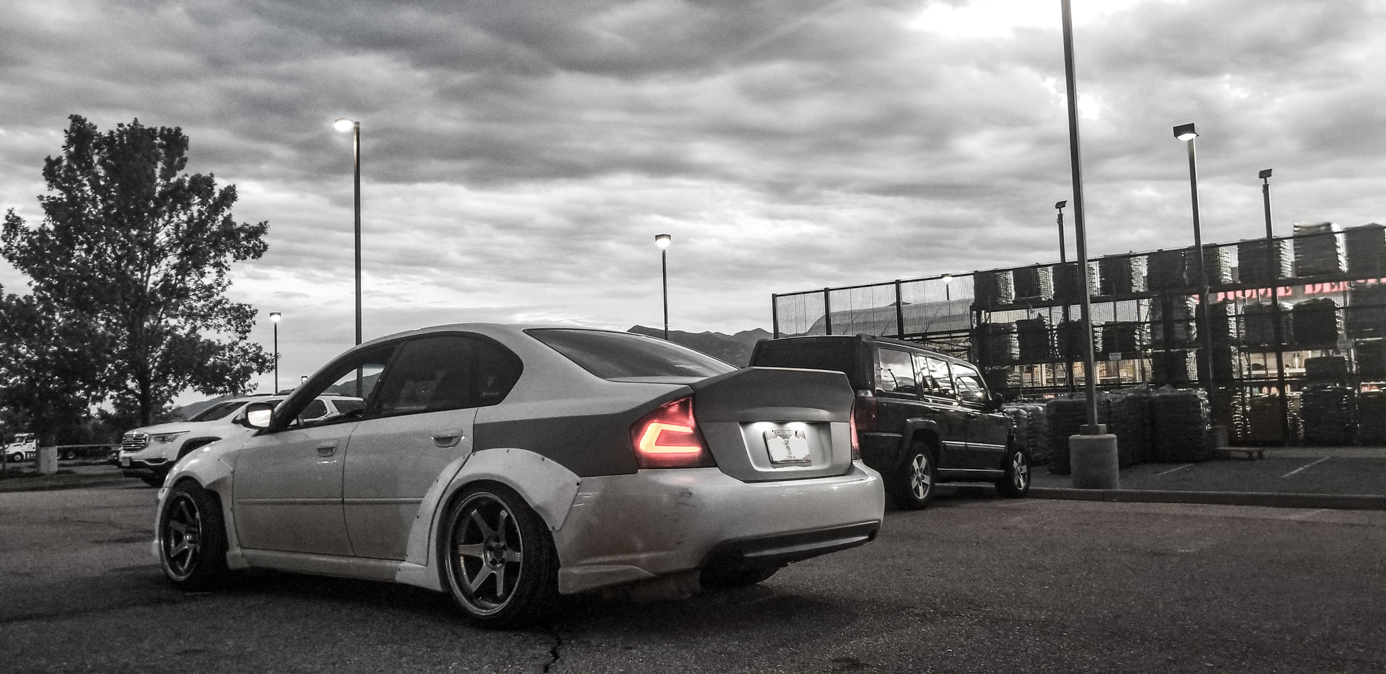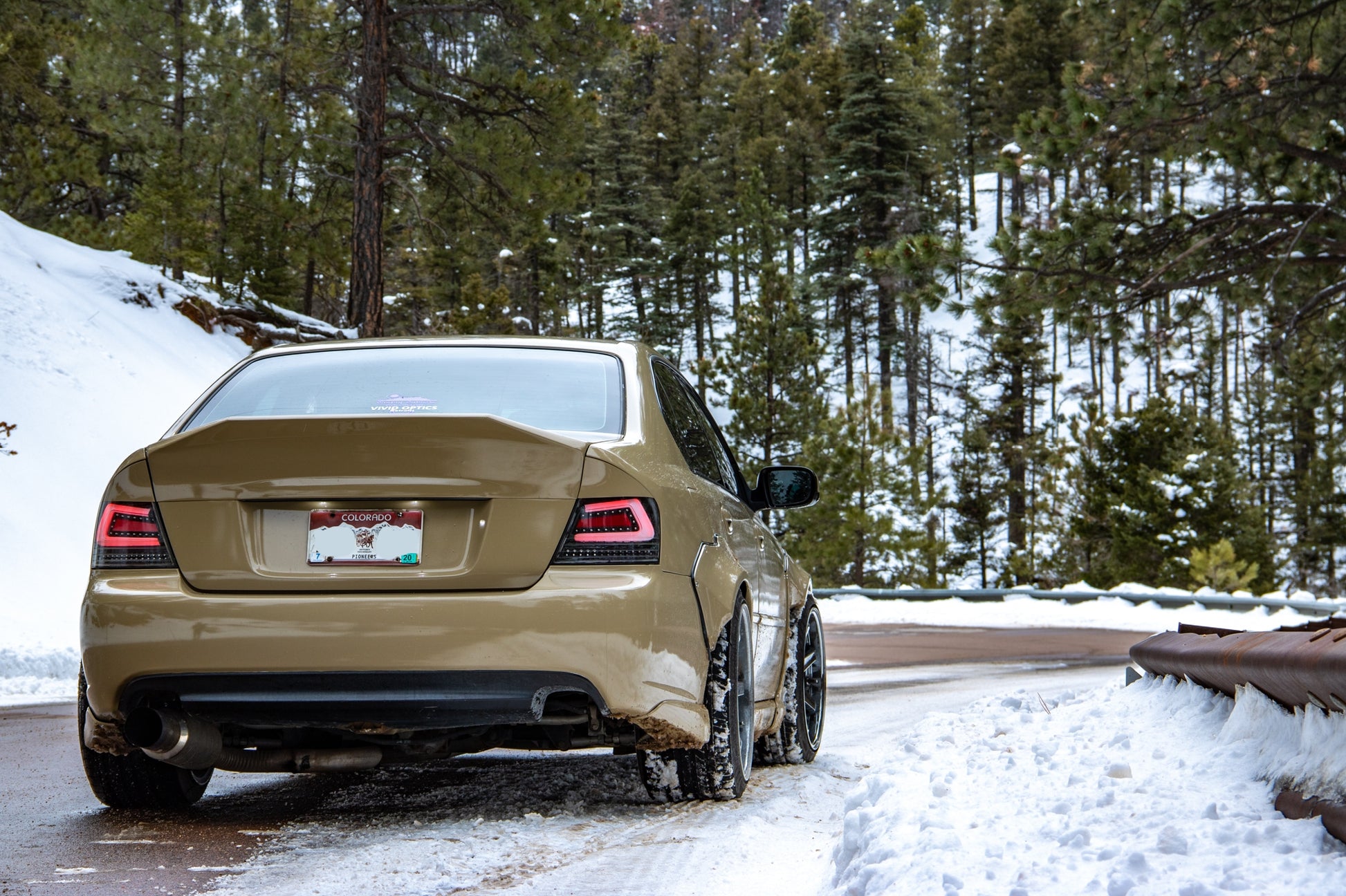 Custom retrofitted tail lights for Subaru Legacy Sedan models.