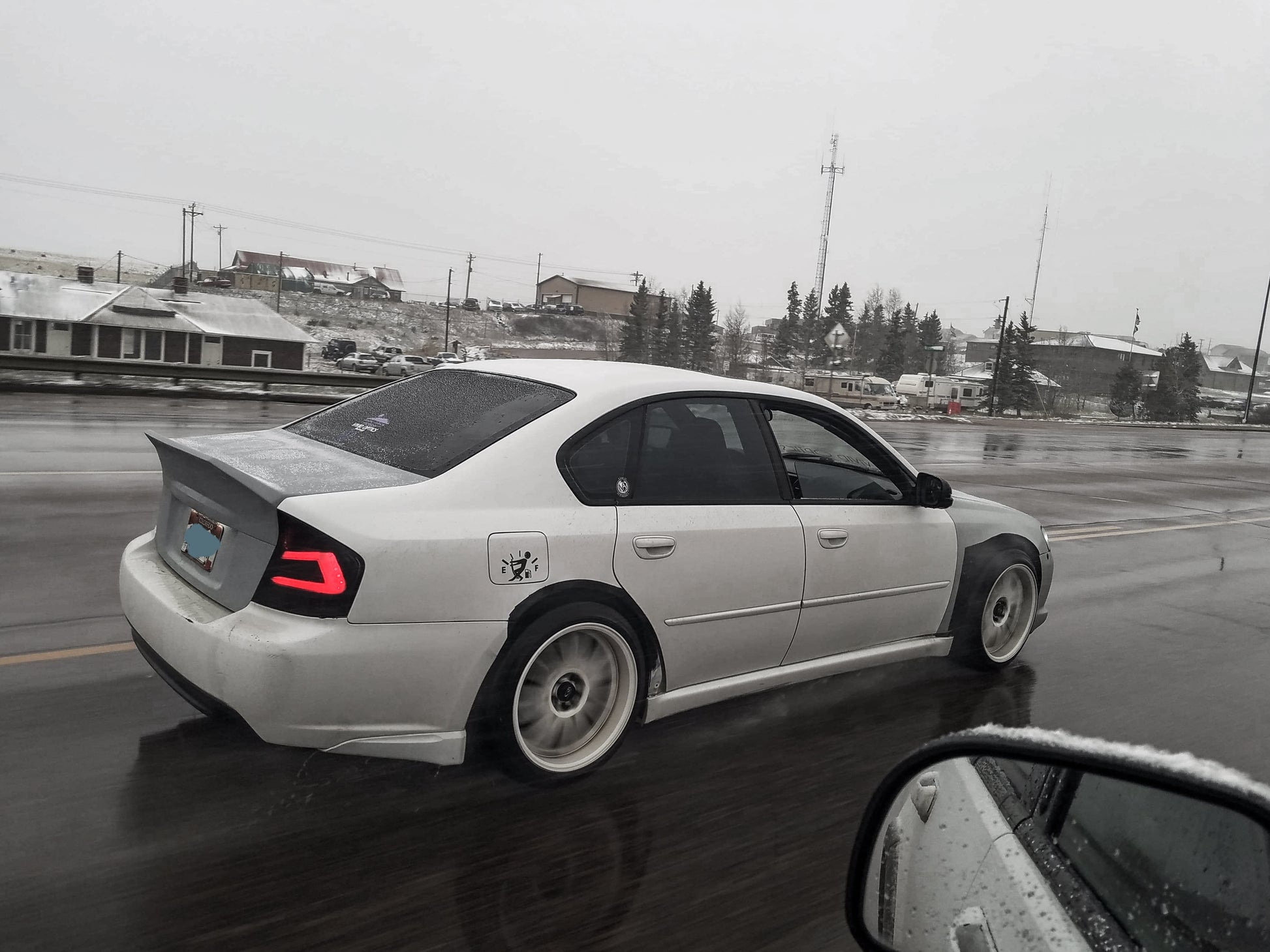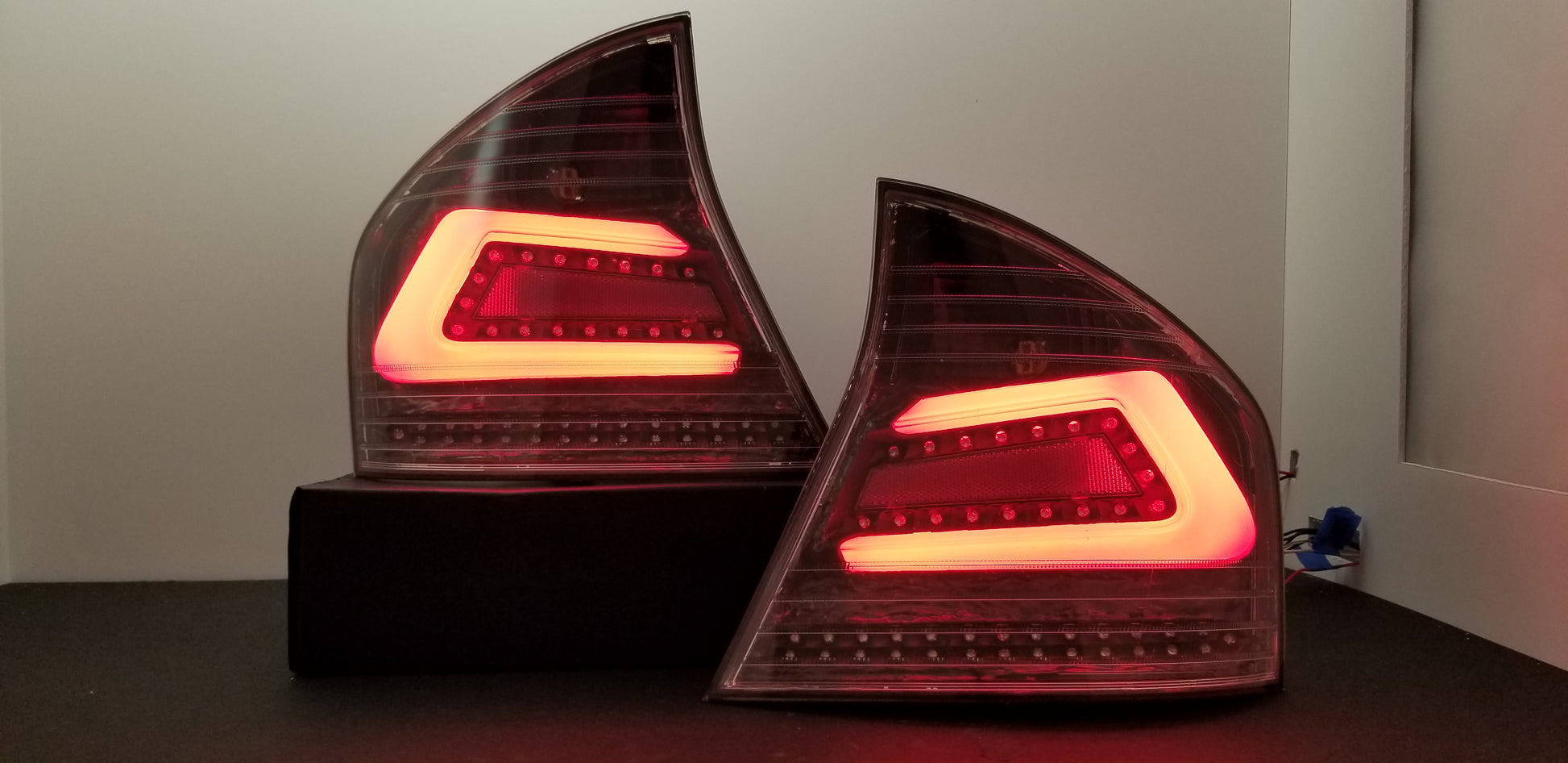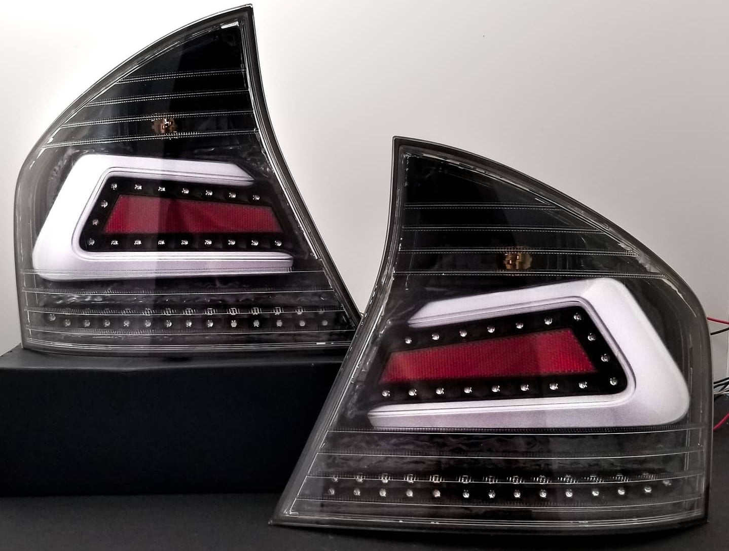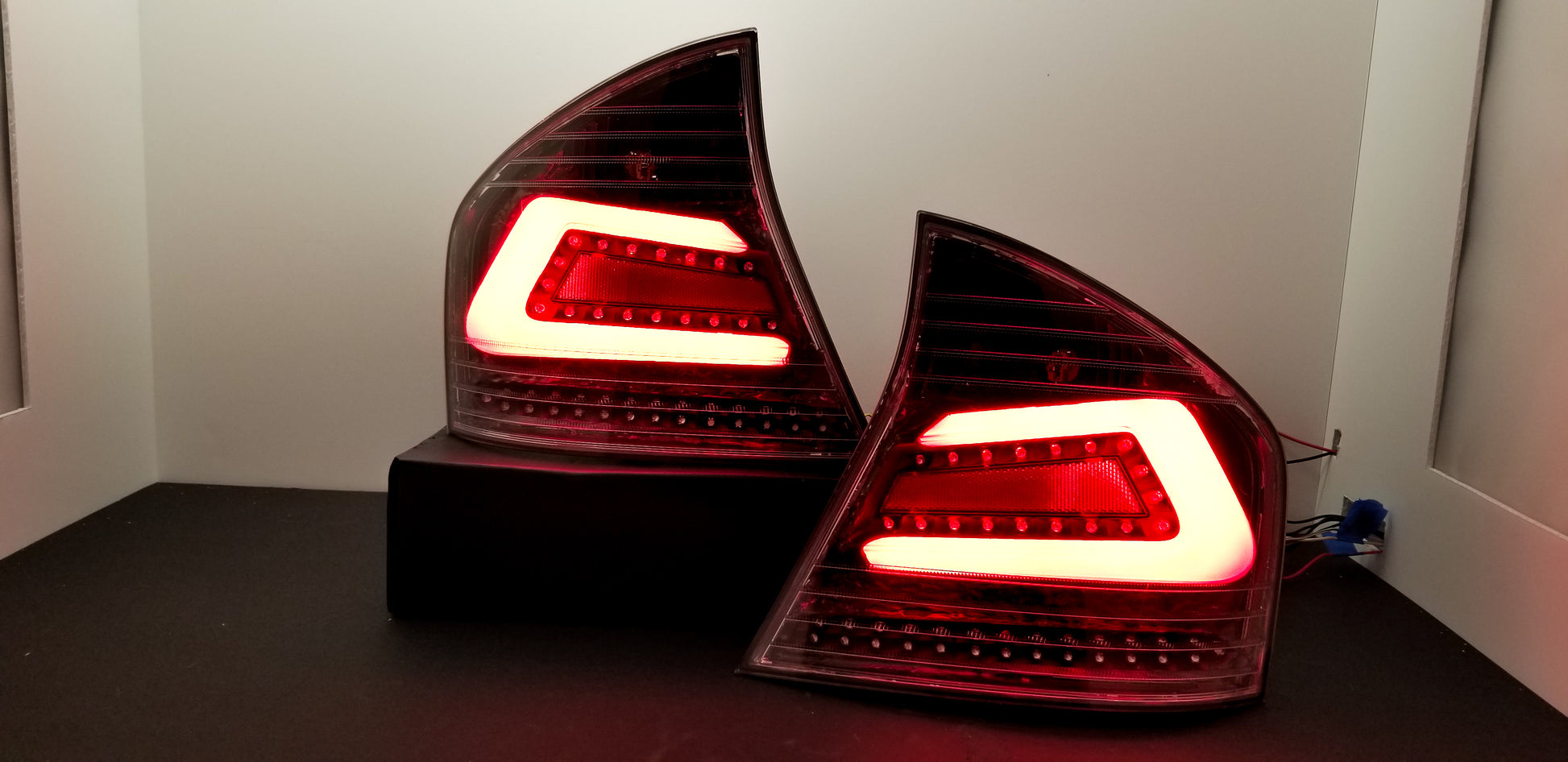 Custom retrofitted tail lights for Subaru Legacy Sedan models.