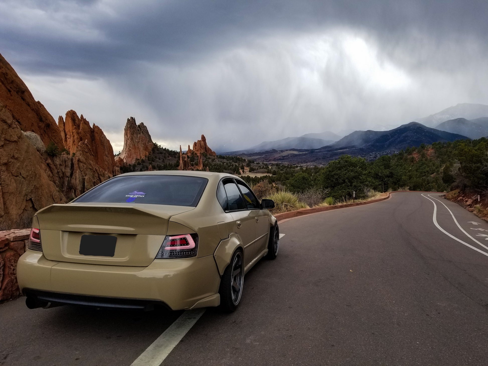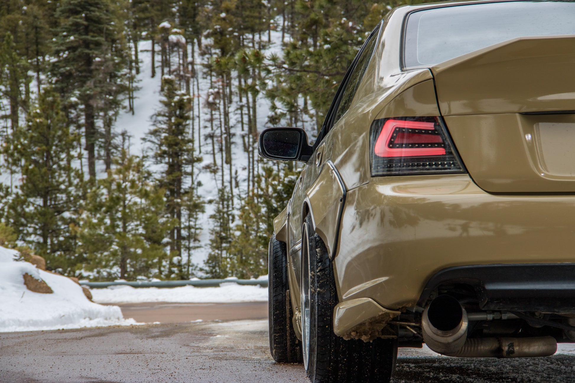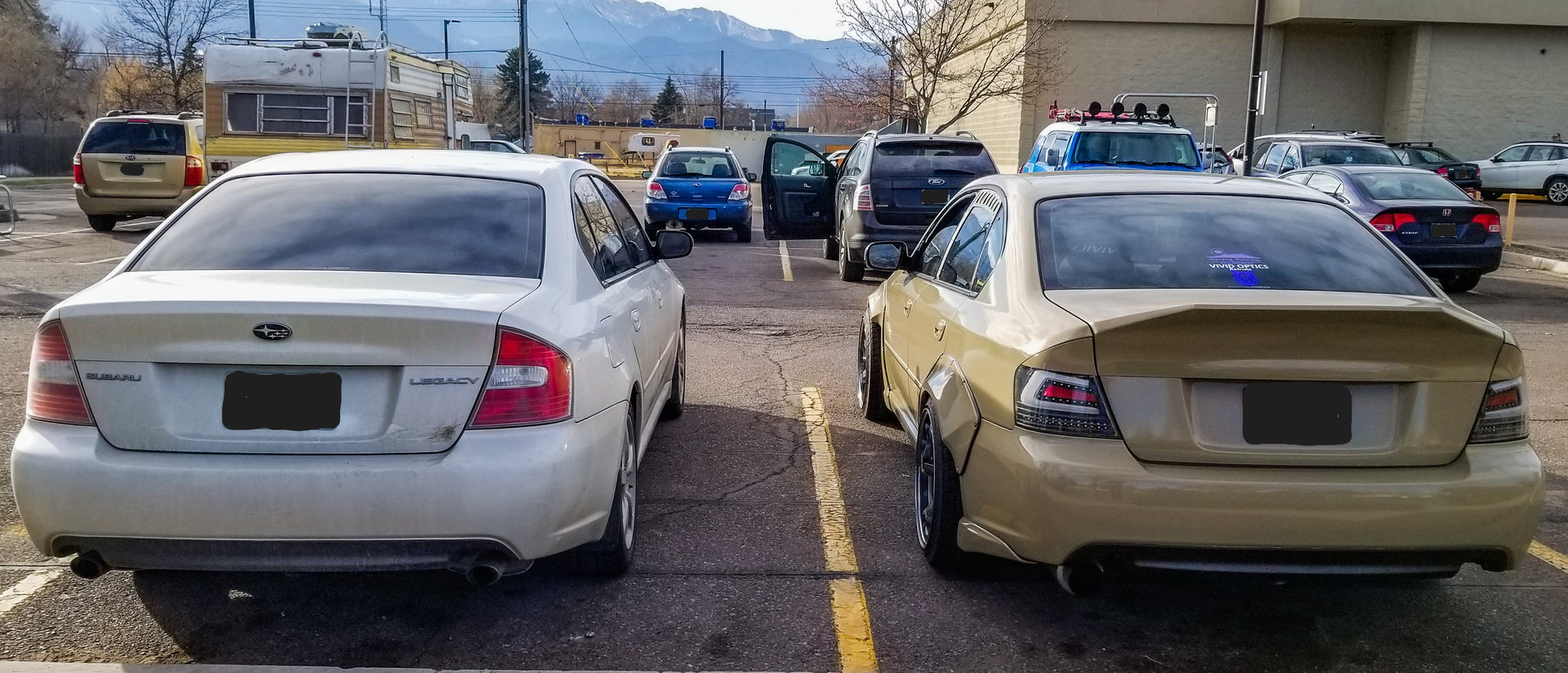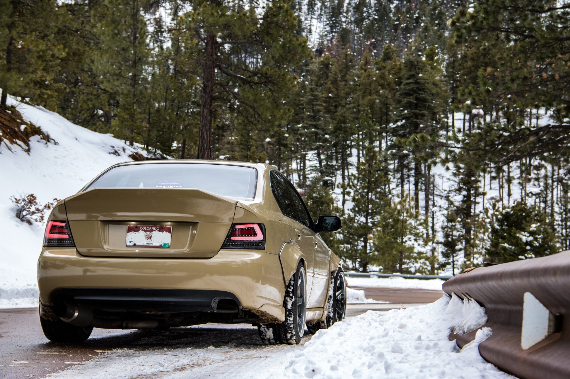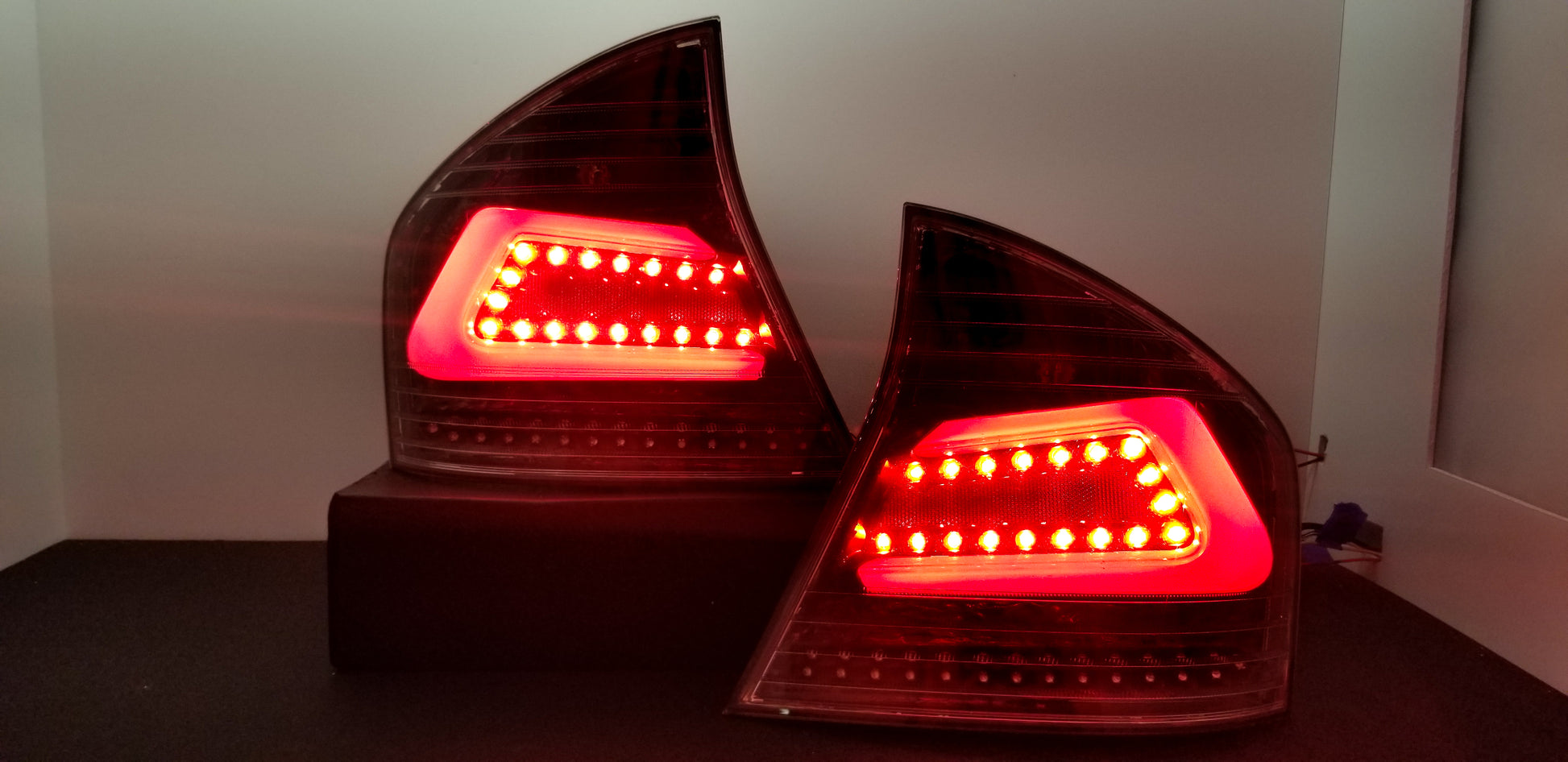 Custom retrofitted tail lights for Subaru Legacy Sedan models.