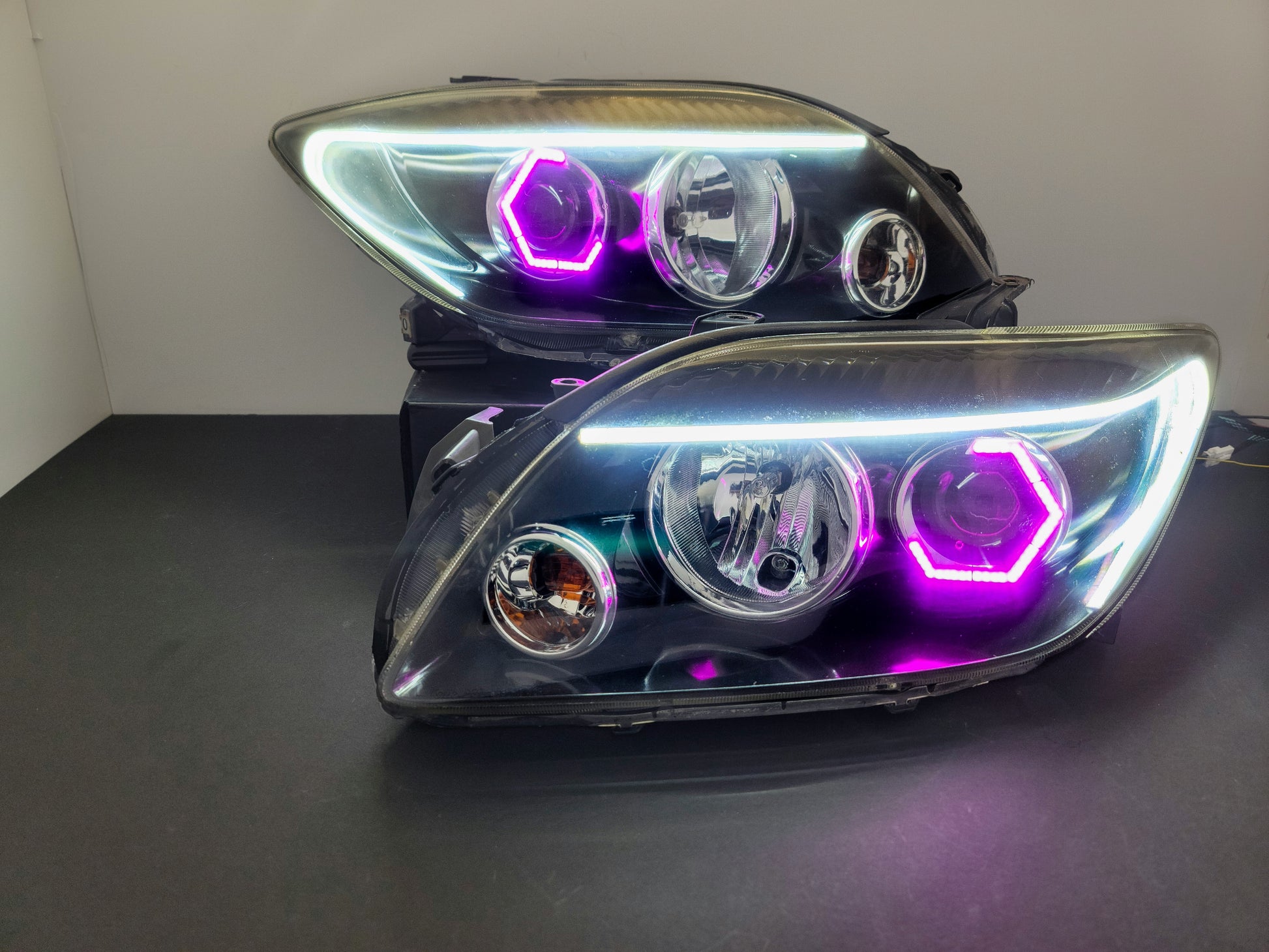 Custom retrofitted headlights for all 2005-2010 Scion TC models.