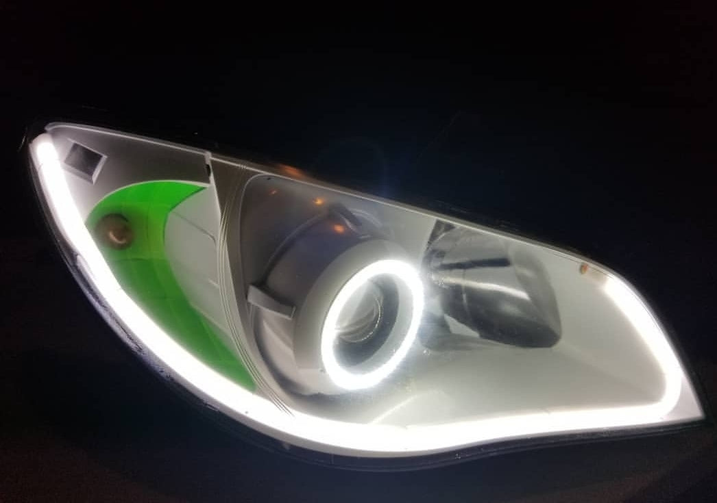 Custom retrofitted headlights for Subaru Impreza/WRX/STI models.