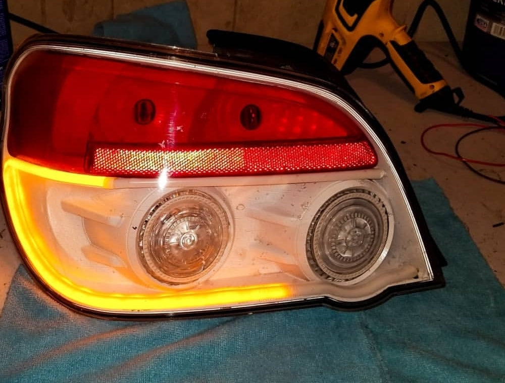 Custom retrofitted tail lights for Impreza/WRX/STI Sedan models.