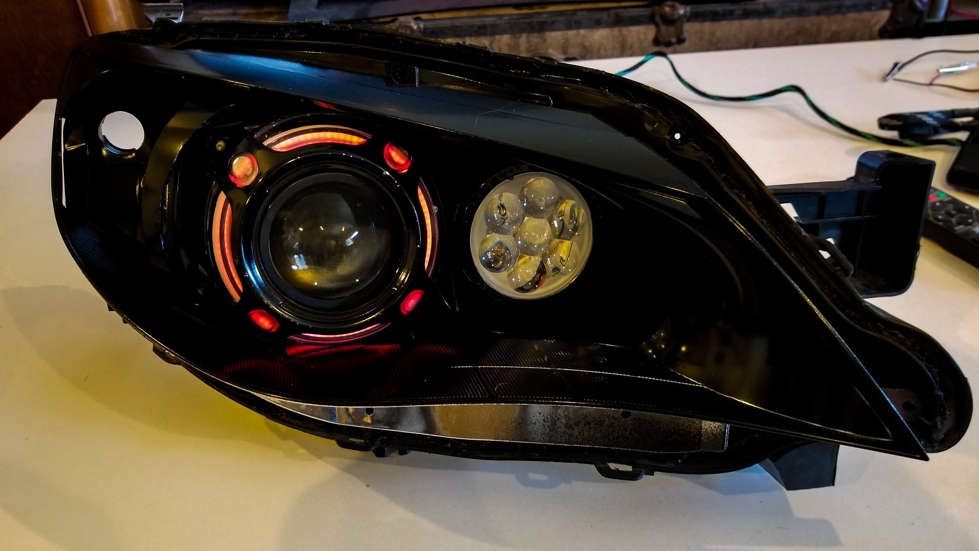Custom retrofitted headlights for Subaru Impreza/WRX/STI models.