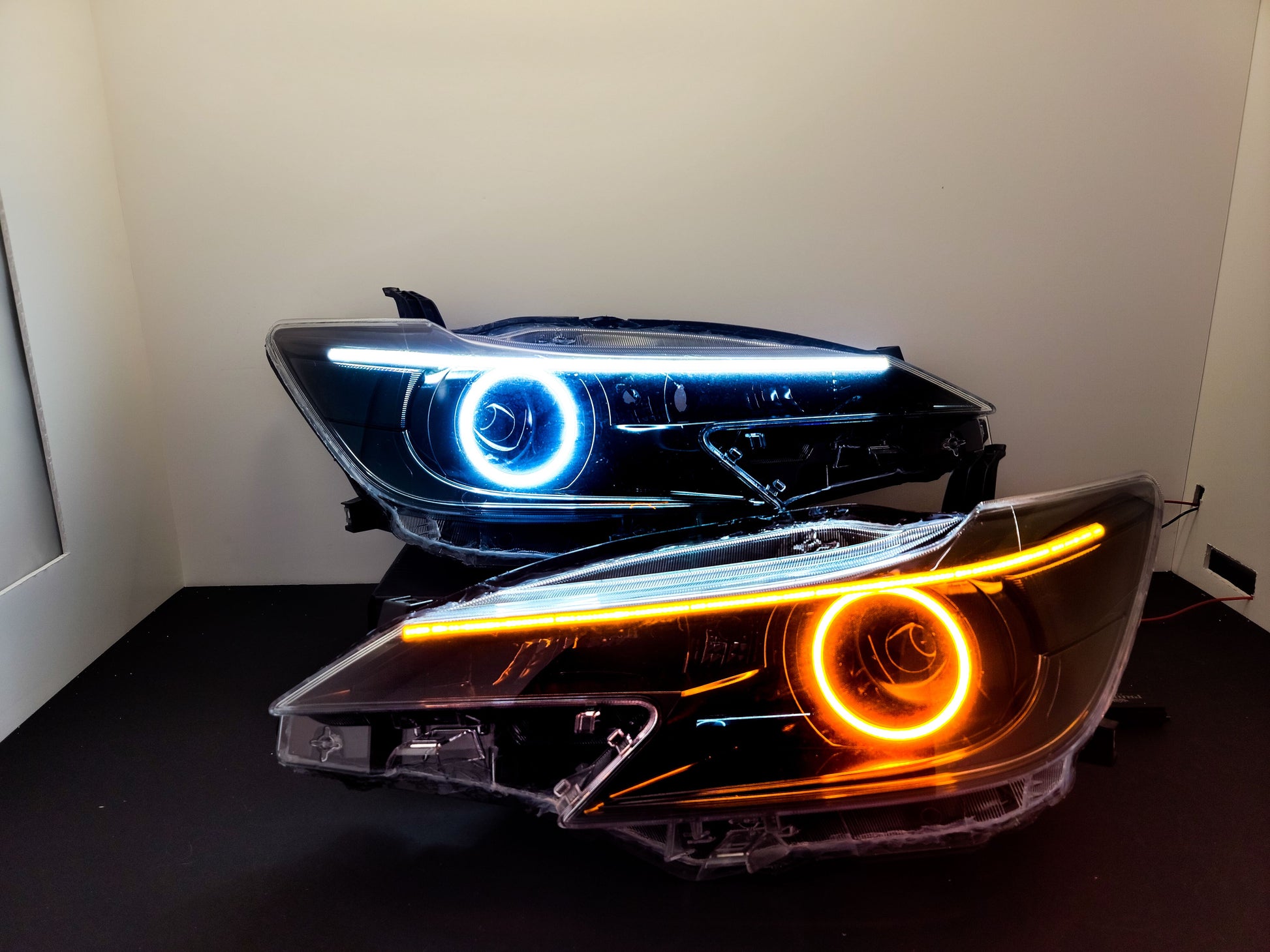 Custom retrofitted headlights for Scion TC models.