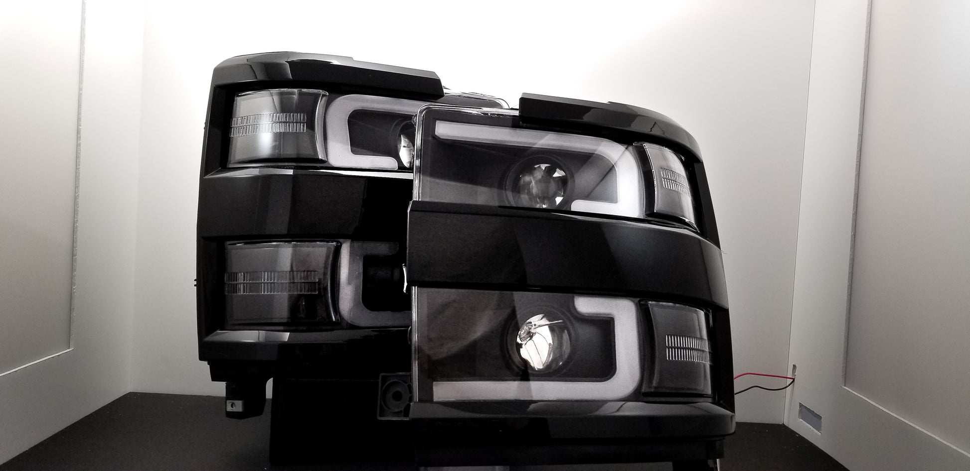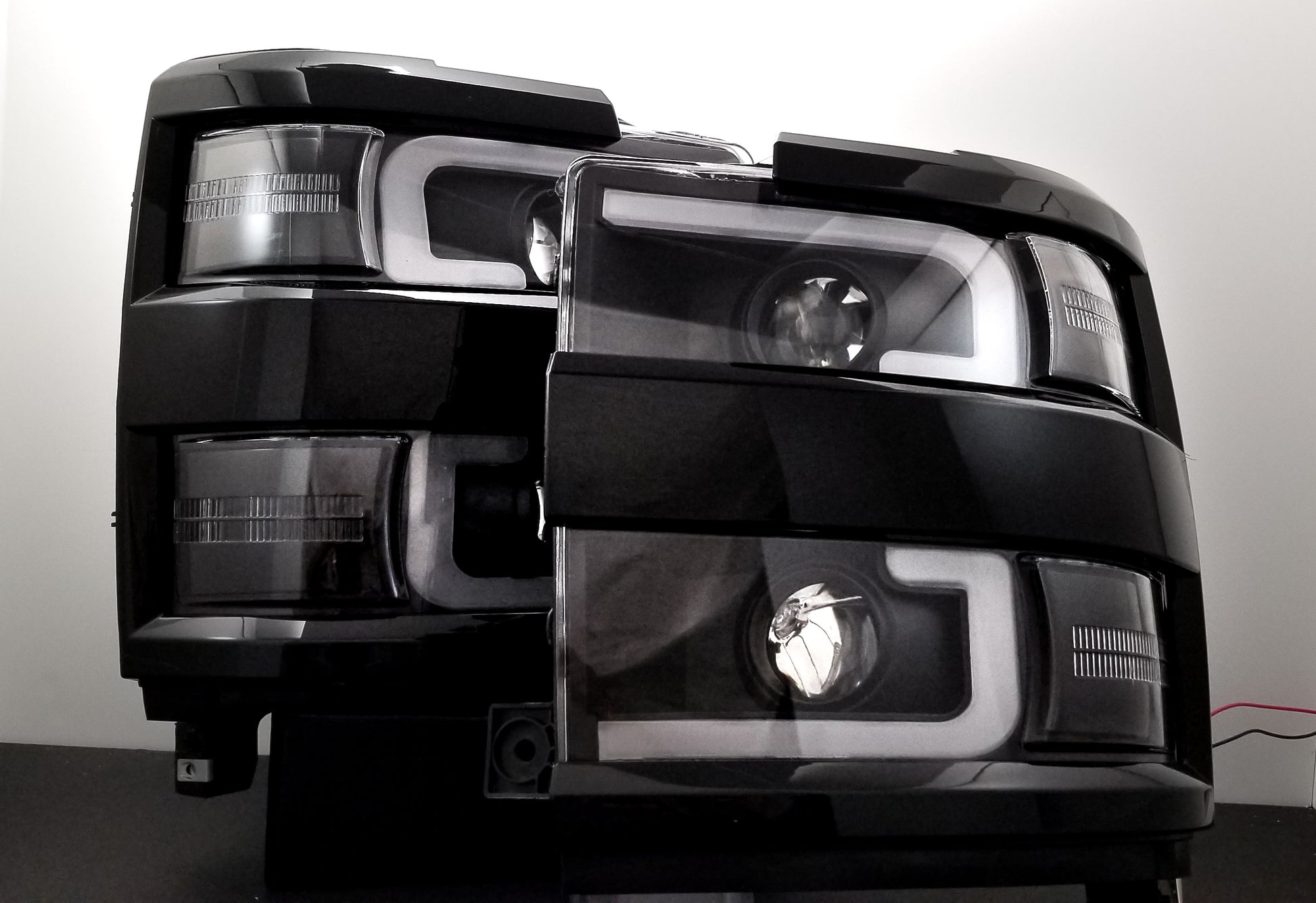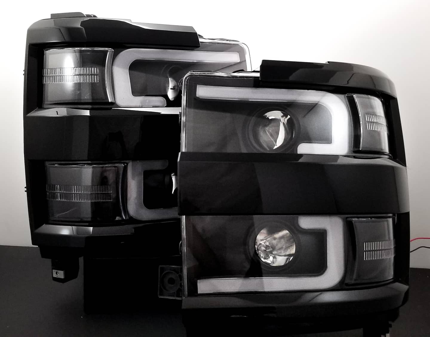 Custom retrofitted headlights for Chevrolet Silverado 2500 models.