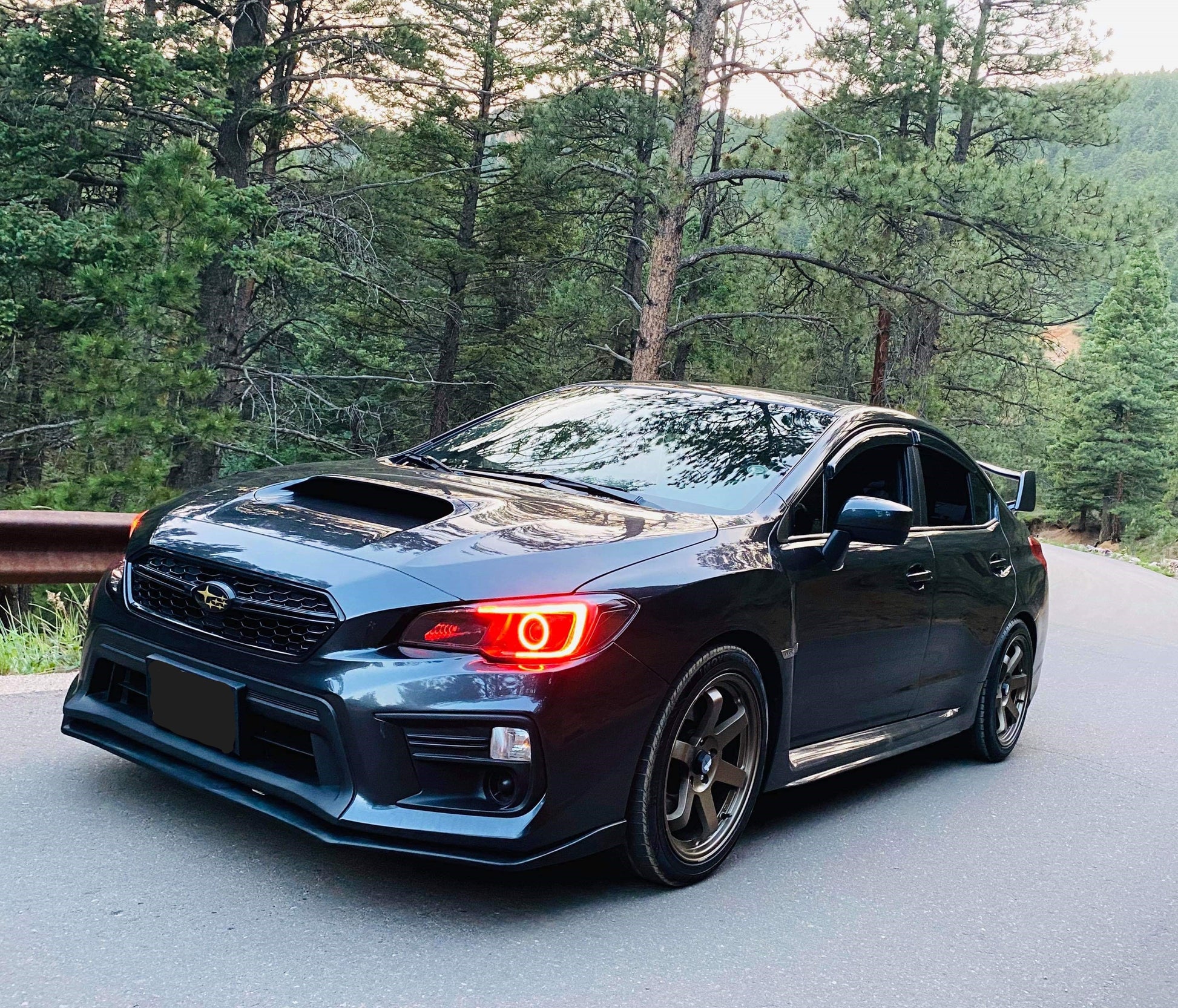 Custom retrofitted headlights for Subaru WRX/STI models.