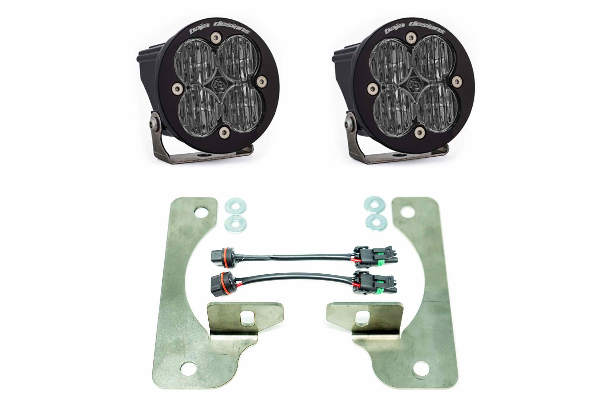 Our JL Rubicon Fog Pocket: replacement kit allows enthusiasts to retain factory fit and finish, while taking advantage of premium aftermarket LED output. our shop is a proud distributor for Baja Designs, this kit features a pair of Squadron Pros, which have a combined output of 9,800 lumens. Installing the kit: can't be any easier. Our durable brackets have been designed to retain the stock mounting points. The provided wire adapters plug and play right into the OEM connectors, allowing the user to retain use of the factory fog switch, with no need for splicing or soldering. Baja Designs Features: uService: So you can replace the Lenses And Optics. ClearView: Gives you all The light, right where you need it most! MoistureBlock means they are Waterproof, Rain Proof, Submersible. And Baja CopperDrive: These are the only LED products on the market driven at 100%! 5000K Daylight - Less Fatigue for you as the driver & Natural Color.
