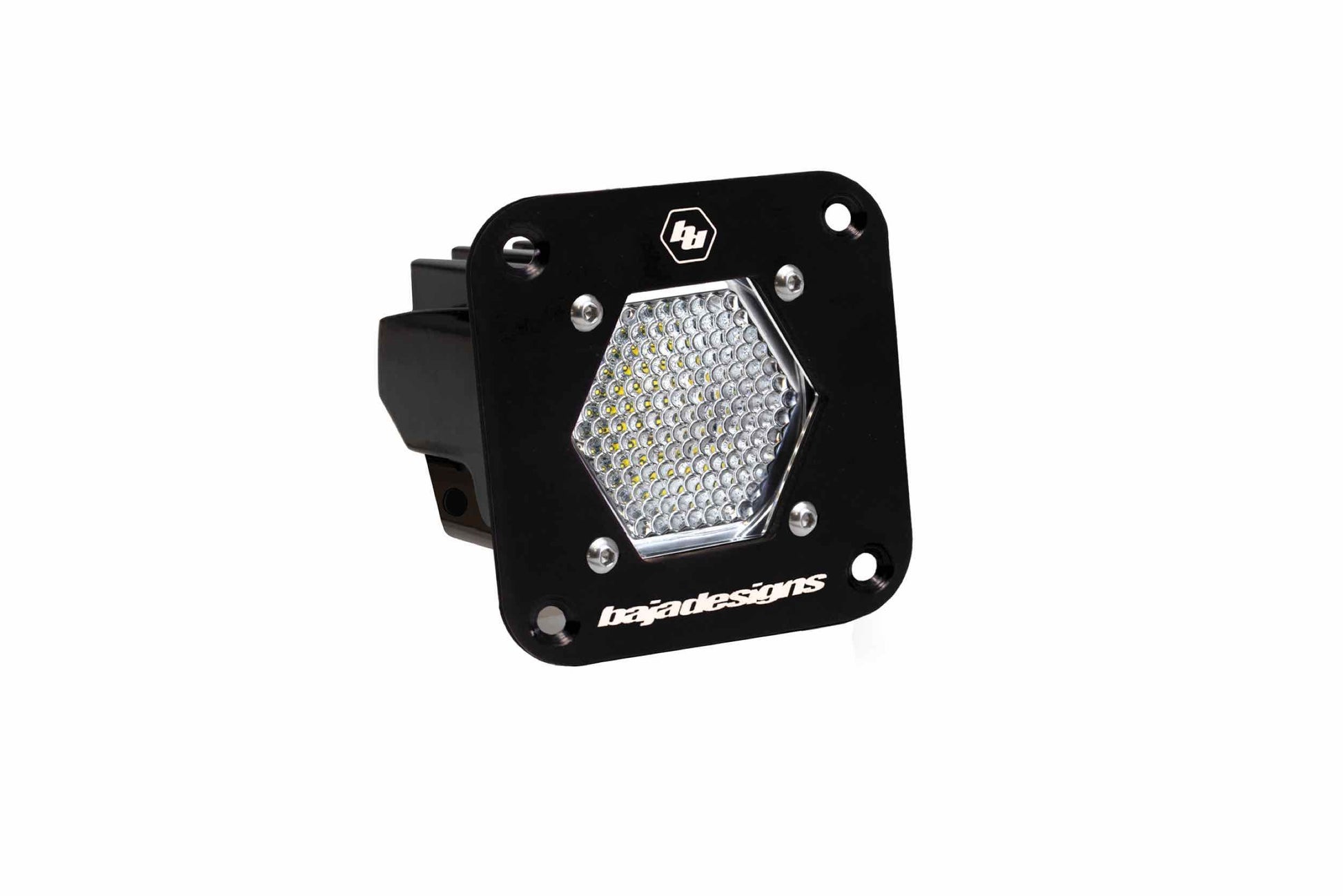 Designed: from the ground up our new S1 fills the shoes of a large light in a small package! The S1 utilizes a highly specialized reflector and LED combination to outshine the competition. With the 2.1" length, width, and height the S1 is highly versatile for any application that is in need of light. our shop is a proud distributor for Baja Designs. Whether you're looking for a light to drive off of, or something to light up a campsite the S1 will exceed your expectations! One: of the key features that makes our S1 Flush Mounts unique is that the hole to mount them can be made by a one 2.5 inch hole saw. This makes for an extremely easy install! Baja Designs Features: uService: So you can replace the Lenses And Optics. ClearView: Gives you all The light, right where you need it most! MoistureBlock means they are Waterproof, Rain Proof, Submersible. And Baja CopperDrive: These are the only LED products on the market driven at 100%! 5000K Daylight - Less Fatigue for you as the driver & Natural Color.