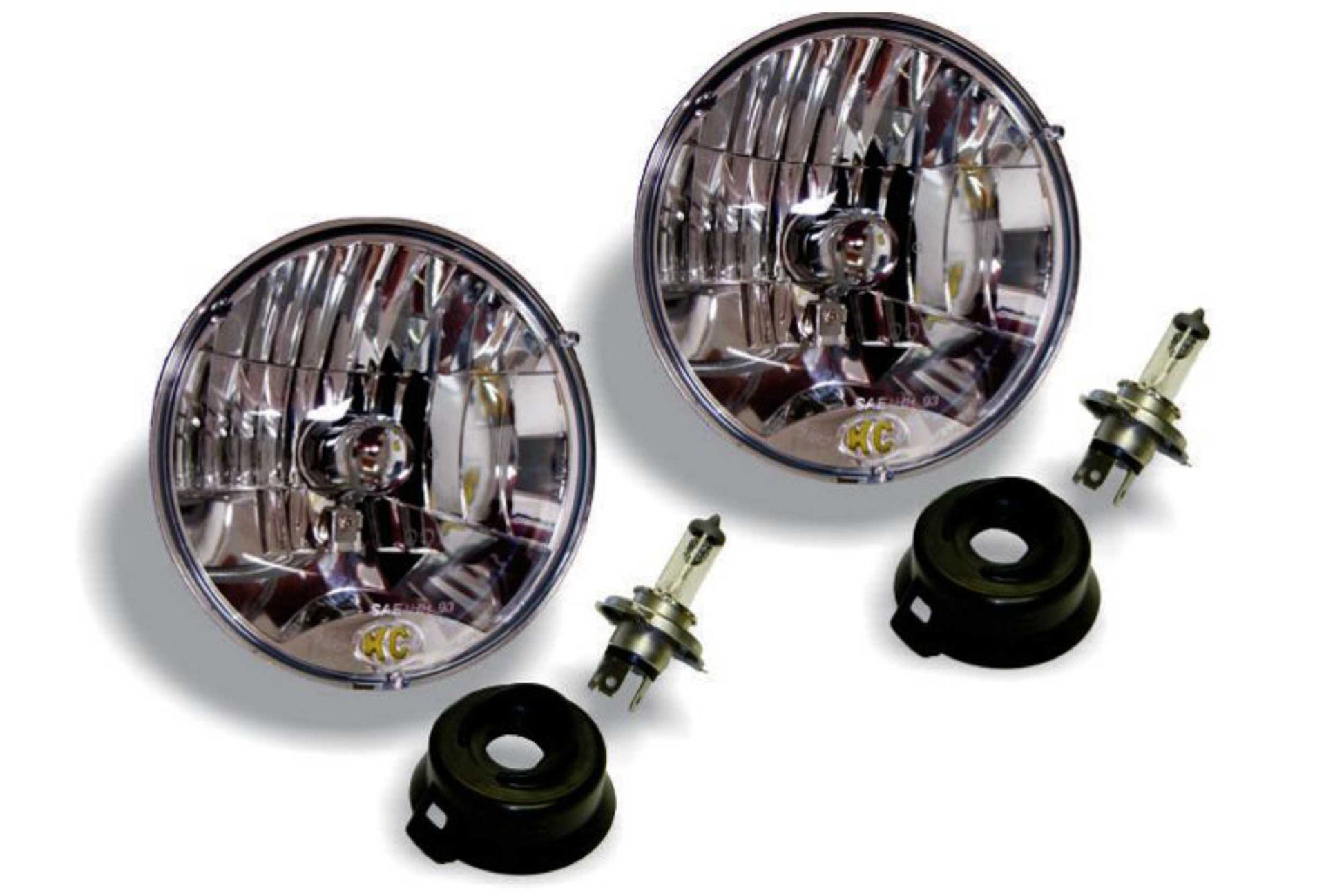 OVERVIEW: 7in Halogen Headlight features a 55/60w Halogen H4 bulbs, in a DOT Street legal approved beam pattern, UV treated Lexan lens and multi-surface reflector optics. System includes replaceable H4 Halogen bulbs and easy plug n play wiring. PERFORMANCE HALOGEN AND PRECISION OPTICS: KC's 7in H4 Headlights are significantly brighter than factory Jeep headlights, delivering maximum D.O.T. approved candlepower using CAD designed multi-surface reflector optics and powerful 55/60W H4 Halogen bulbs. UPGRADE YOUR FACTORY JEEP HEADLIGHTS PERFORMANCE: When it comes to out of the box headlight performance for your Jeep, KC's 7in H4 Headlights significantly improve light performance over factory headlights. Not to mention, easy-to-install with Plug'N Play direct replacement fitment. DAY RUNNING LAMP AND HIGH BEAM OPERATION: KC's headlights feature a relay system which allows the operation of high beams while simultaneously providing active low beam Day Running Lamps for safety while meeting D.O.T. approved compliance. OFF ROAD TESTED DURABILITY: Designed to handle extreme off road environments, KC 7in H4 Headlights featured a sealed rubber boot design for H4 bulbs with UV and impact resistant, hard coated Lexan lenses.
