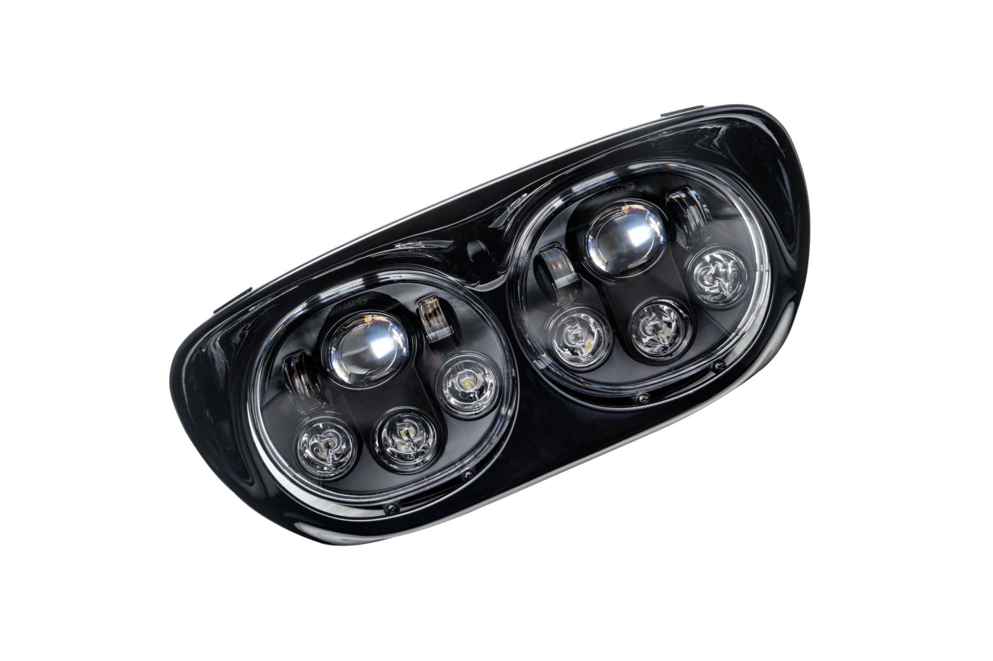 Waterproof, and extremely durable, these headlamps are perfect for replacing simple halogens with more effective LEDs. This product has a 2 Year Manufacturer's Warranty as well as a plug and play design and a high beam/low beam function. Product Specs: (Per Light). Low Beam Lumens: 1,600lm. High Beam Lumens: 3,150lm. Low Beam Wattage: 30W. Hight Beam Wattage: 40W. Voltage: 10-32V DC. Color Temperature: 6,000K. Construction: Die-cast Aluminum. Lens Material: PC. Lifetime: 30,000 hrs. Plug: H4. Package Includes: (1) ORACLE Harley Road Glide Replacement LED Headlight.
