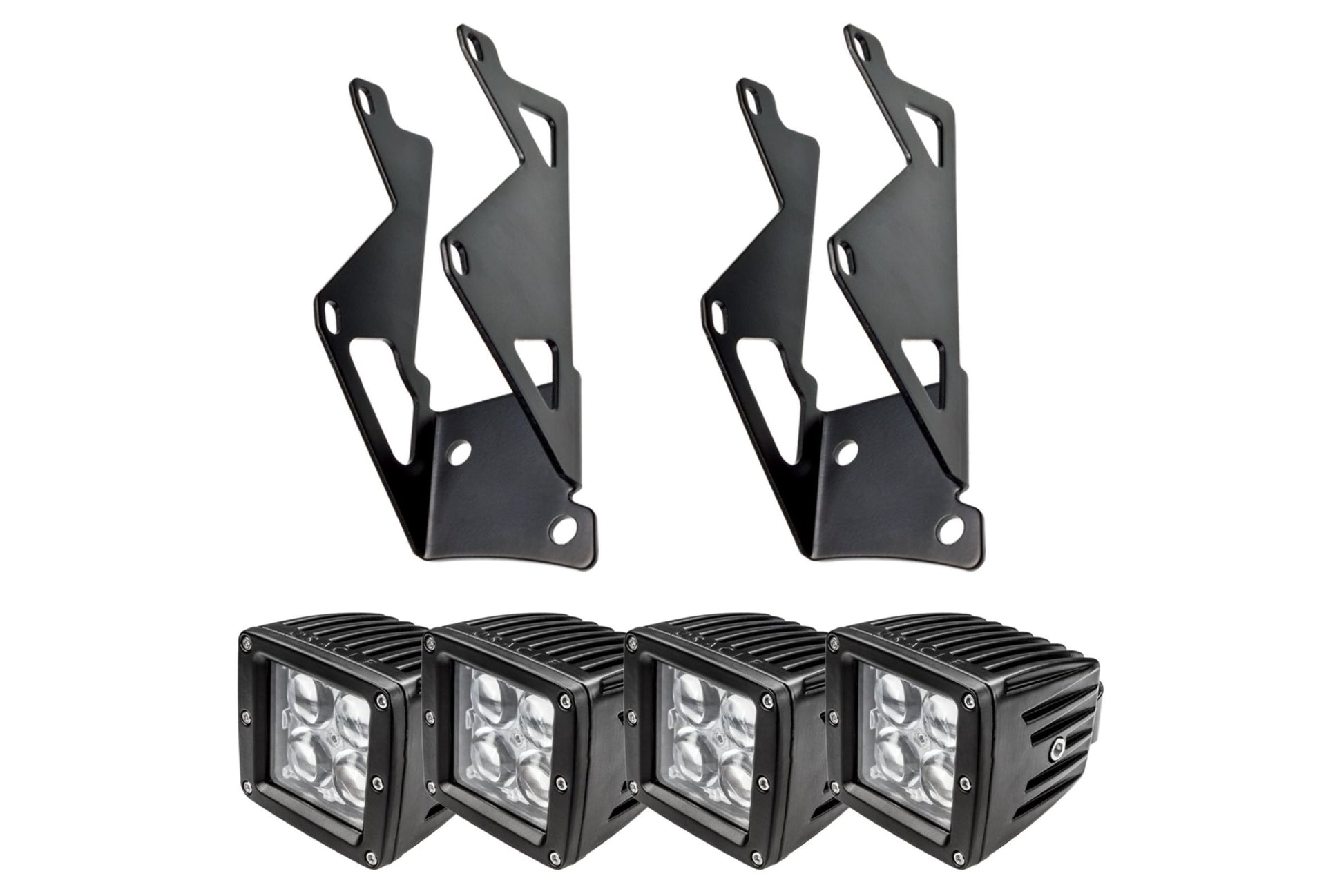 Mount four ORACLE 20W 3"Double Row LED Square Spots to the lower windshield of a Jeep Wrangler JK easily with these new pillar mount brackets from ORACLE Lighting. These brackets are made specifically for the JEEP Wrangler JK model and will attach directly to your vehicle without further modification. Everything you need to to add off road lights to your vehicle is supplied.